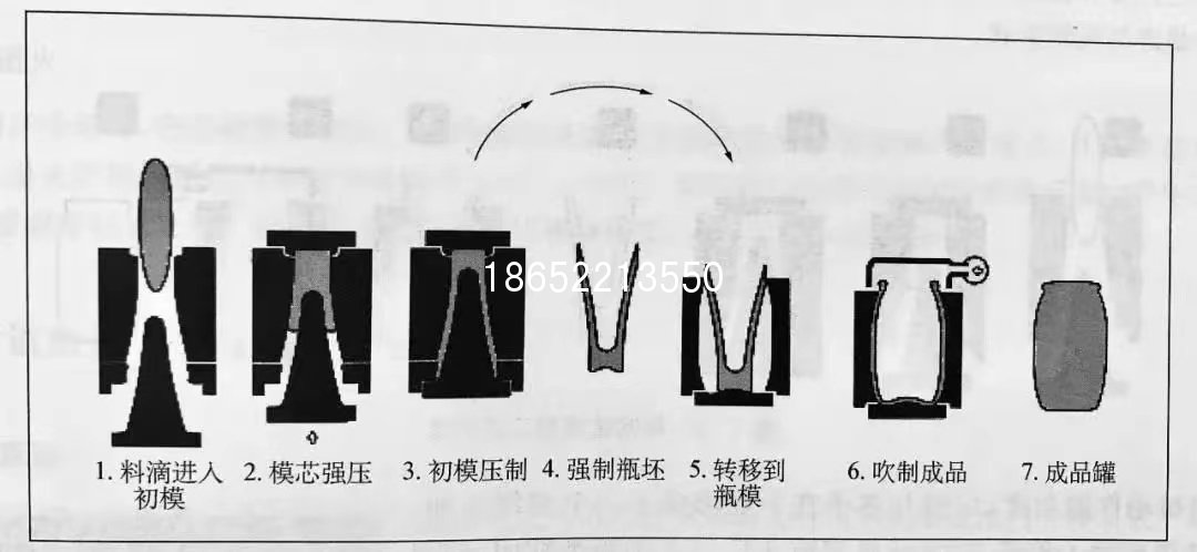 玻璃瓶罐的生產在兩個主要階段內進行:在第一階段形成口模模具所有的細節,完成瓶口包括內開口,但該玻璃制品的主體形狀會比其最終尺寸小得多。這種半成型的玻璃制品被稱為型坯,在下一個瞬間,它們將會被吹制成為最終的瓶罐形狀。